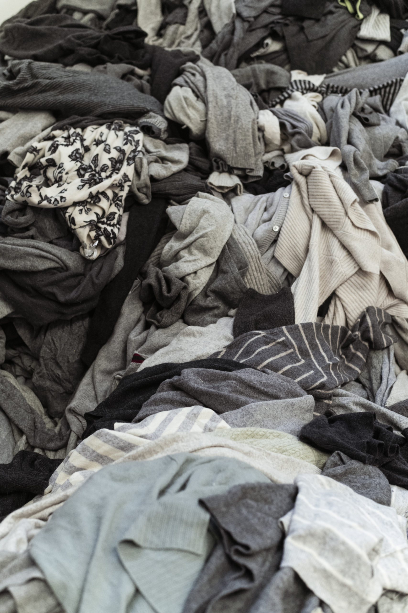 Fine cashmere garments are carefully gathered and sorted, chosen for their quality, their character, and the potential they still carry.